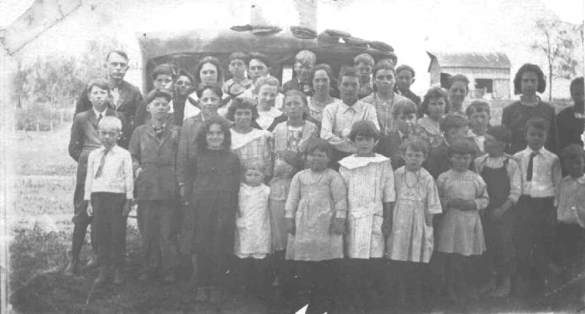 Some of those in the photo include: Eula, Grace, Albert, Marie and Vera Cameron; Beulah, Grace, and Hazel Quicksall; Cecil and Stanley Elam; Karl, Ralph, Mabel and Maude Ferguson; Eugene Boldt; Howard, Homer, Lawrence, Art and Ruby Culver; Clayton Tabbert; and Guy Storm, Teacher.